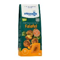 Ergibt 14-16 FalafelbällchenZubereitungszeit: ca. 10 Minuten Quellzeit: 15 MinutenZubereitung: Inhalt des Päckchens in eine Schüssel geben und mit 250 ml kochendem Wasser vermengen. 15 Minuten quellen lassen. Mit feuchten Händen 14-16 teelöffelgroße Bällchen formen. In einer Pfanne mit reichlich Öl von allen Seiten goldbraun anbraten. Herausnehmen und kurz auf einen Teller mit Küchen-papier legen. Die Falafeln schmecken warm und kalt. Dazu passt Salat, Joghurt-Dip oder Hummus.  Varianten: - Fingerfood: Falafelmasse zu ungefähr daumendicken Sticks formen, in Sesam wälzen und rundum anbraten. Mit Dip servieren.- Veggie-Burger: Falafelmasse vor dem Braten zu ca. 2 cm dicken Bratlingen formen.- Gefülltes Gemüse: mit der Falafelmasse Gemüse wie Zucchini oder Paprika füllen und im Backofen überbacken.