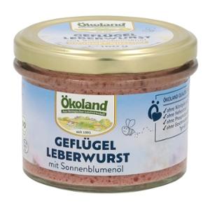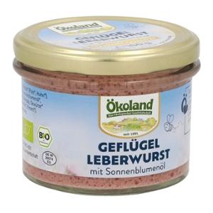 Die Ökoland Geflügel-Leberwurst ist eine Wurst-Spezialität aus reinem hochwertigem Bio-Geflügelfleisch und Bio-Geflügelleber in Gourmet-Qualität. Mit Sonnenblumenöl erhält sie die besonders feine und streichfähige Konsistenz. Die traditionellen Gewürze sorgen gemäß Hausmacher Art für den herzhaft-leckeren Geschmack. Im praktischen Zylinderglas leicht entnehmbar.