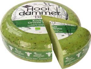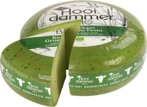 Die schöne grüne Farbe des Käseteigs entsteht durch die Zugabe von Spirulina Algen und Färberdistel, und Basilikum. Die Würze erhält der Käse durch den Knoblauch.