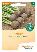 Kugelrunder, schwarzer, fester Winterrettich mit kräftigem Aroma und mit einer guten Schärfe. Runder schwarzer Winter ist unter optimalen Bedingungen bis März/April lagerfähig. Achten Sie auf gleichmäßiges Wässern, damit die Rettiche zügig wachsen und nicht pelzig werden. Keine frische organische Düngung. Gegen Erdflöhe und Rettichfliege hilft das Auflegen von Vlies. "TIPP": Als Mittelzehrer ist Rettich sehr gut als Folgekultur nach Erbsen oder Bohnen anzubauen.